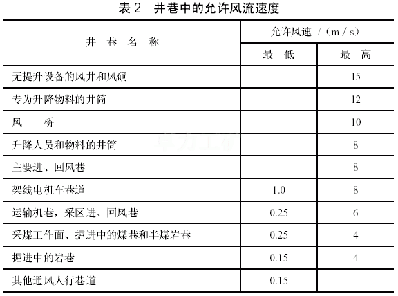 第一百零一條 井巷中的風流速度應符合表2要求。