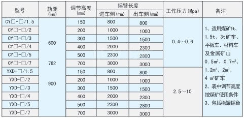 我公司生產各種礦用搖臺,液壓搖臺,手動電液搖臺。搖臺指罐籠裝卸車時與井口、馬頭門處軌道聯結用的活動平臺,多用于礦山工程和石油開采施工中。搖臺為一段可擺動的軌道,其一端繞固定軸擺動,另一端當罐籠停好后搖尖搭接在罐籠邊緣的導軌襯上,搖臺連接了罐內與車場中的軌道,便于礦車進出罐籠。當搖臺抬起時,搖臺上最突出部的外形與罐籠間留有足夠的安全間隙。搖尖的前端,工作時與罐內導軌襯搭接,搖尖鉸接在搖臂上,可以自由轉動一定的角度,搖尖的尾部設有配重,使其前部經常處于抬起狀態.當由于搖臺放下出現事故后,罐籠通過時,搖尖頭部被撞向下旋轉,則罐籠安全通過.搖尖和導軌襯的結構保證了搖臺與罐籠搭接時,側向能可靠定位,從而保證罐籠內外軌道不會錯位,避免發生礦車掉道事故。
