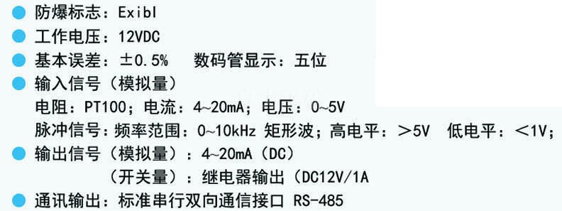 0537-7970778礦用本質安全型智能測控儀表適用于檢測:脈沖頻率信號、直流電流信號、直流電壓信號、交流電壓信號、PT100溫度信號。